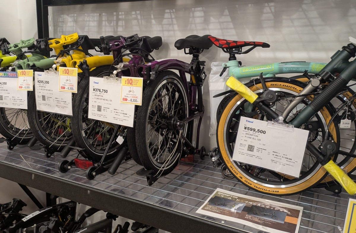 船橋店ではBROMPTONの限定モデルから定番の人気モデルまで幅広くラインナップを取り揃えています。展示台数は常時30台以上で、BROMPTONに精通したスタッフが店頭にてご案内させて頂きます