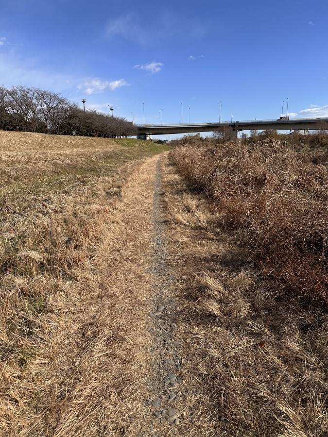 実際に走った場所は多摩川サイクリングコース。砂利のサイズは小さめで高速走行が可能なエリアになります。