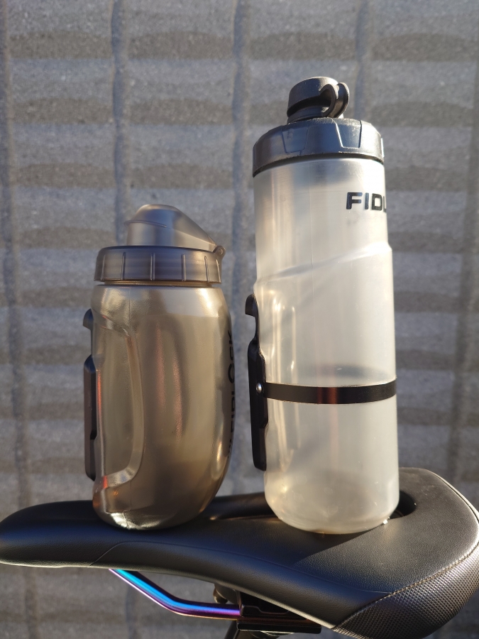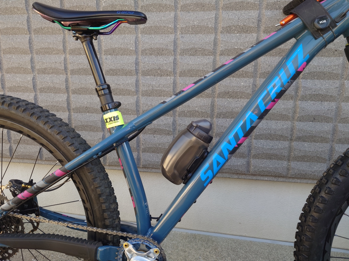 最初に導入したのは600mlのもので、自分のハードテールバイクに丁度良くフィット!激しい下りセクションを走行しても外れる気配もありません!しかもボトル未使用時にはバイクベースだけになるので見た目もすっきり、ケージがありませんからショートパンツのすそやニープロテクターに引っかかることもありません!素晴らしい‼‼