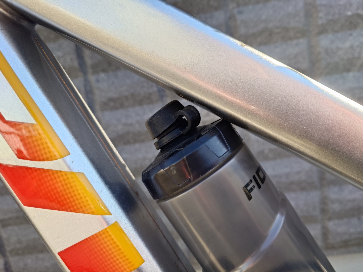 ボトルケージとサイクルボトルを使うことはありませんでした。普段の私はダウンヒルが好きな下り人間ですので、そもそもボトルケージが邪魔(笑)、激しい下りでボトルが吹っ飛び紛失することも!なのでバイクに取り付けることに否定的だったんです。