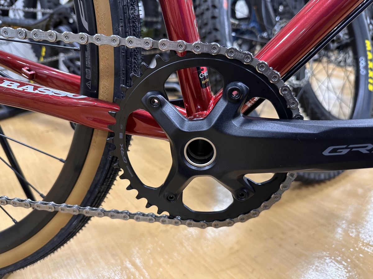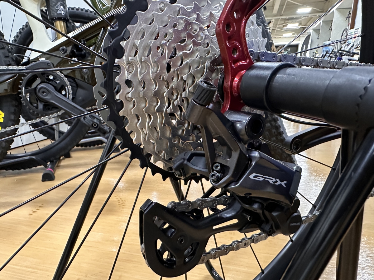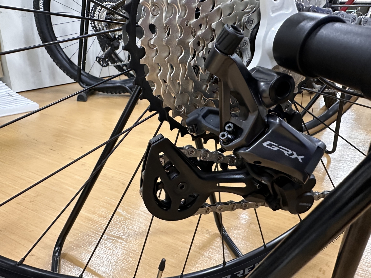 コンポはGRXMIXで1X12速、グラベル走行中はハンドル操作に集中したいので1x12速がおすすめ!