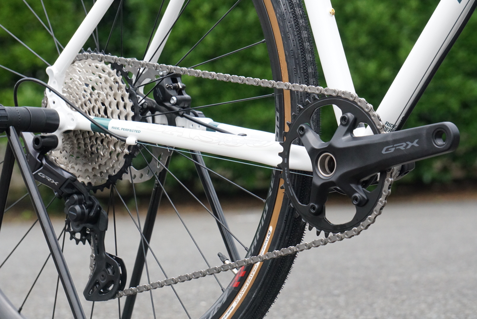 フロントシングルのチェーンリングは40T、カセットスプロケットは10-45Tを装備し、ギア比0.88~4.0までの幅広いレンジをカバー!