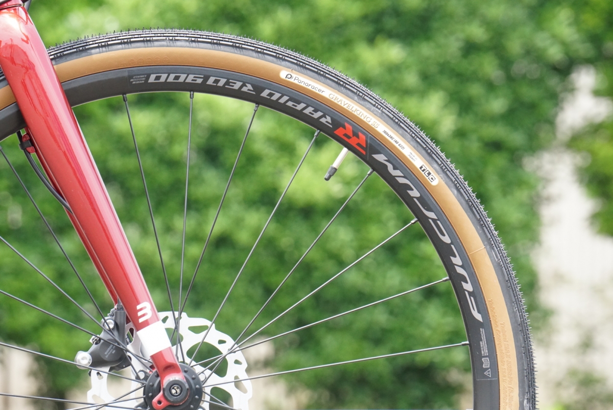 フルクラムのホイールに、オンロードを意識した38cタイヤを標準装備!