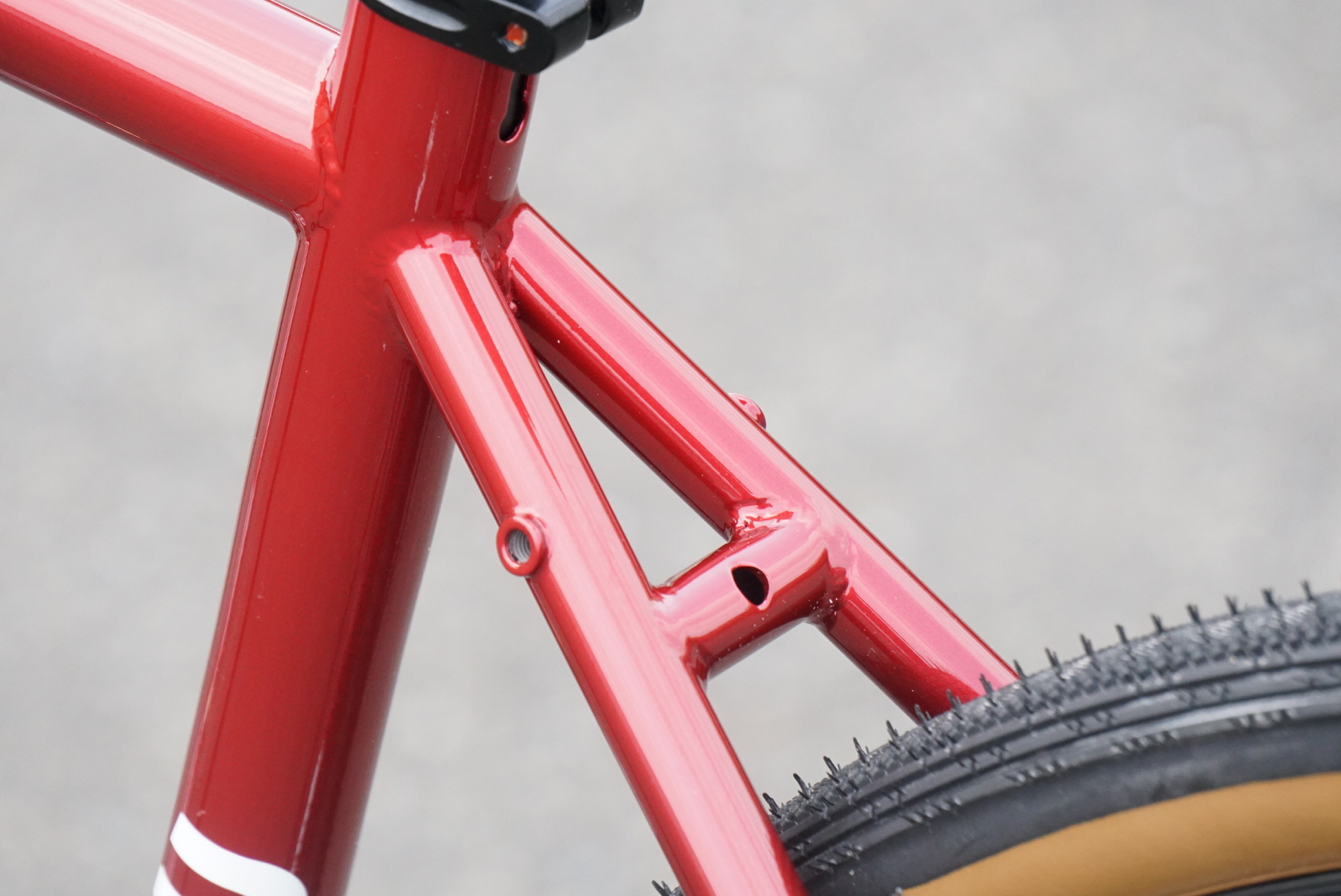 シートステーとリアエンド部分にはダボ穴が配置されているため、リアキャリアの取り付けも可能な設計!