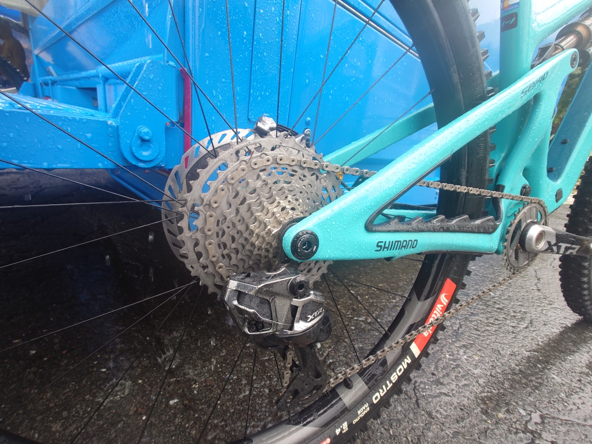 先日の第2戦で優勝したサンタクルズシンジケートチームのジャクソン・ゴールドストーン選手が駆るサンタクルズV10にもこのXTRが使用されていました!