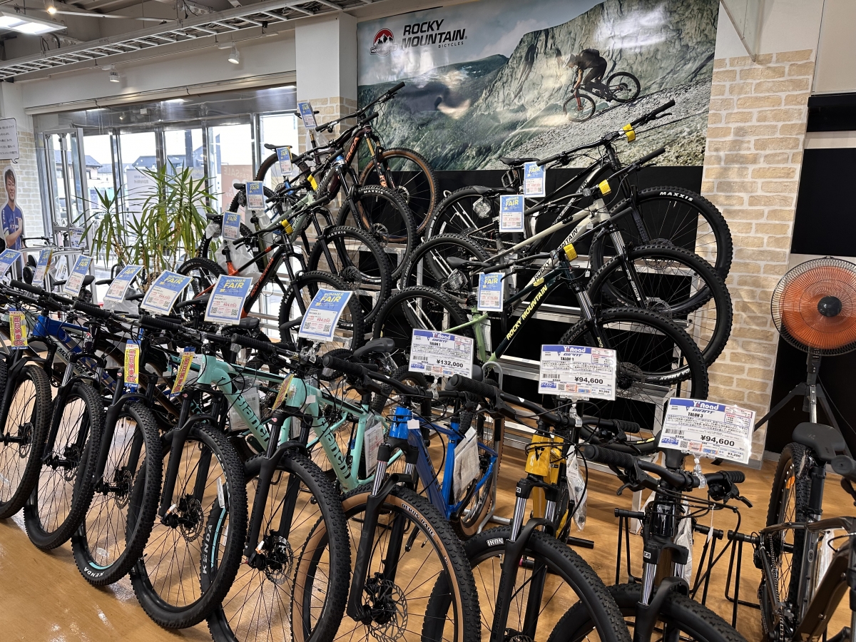 東大和はMTBの在庫数はNo1です。見たことのない車体やサイズ感をしっかり調べてから購入など安心して選んでもらえます。掲載していない特価の車体があるかも・・・