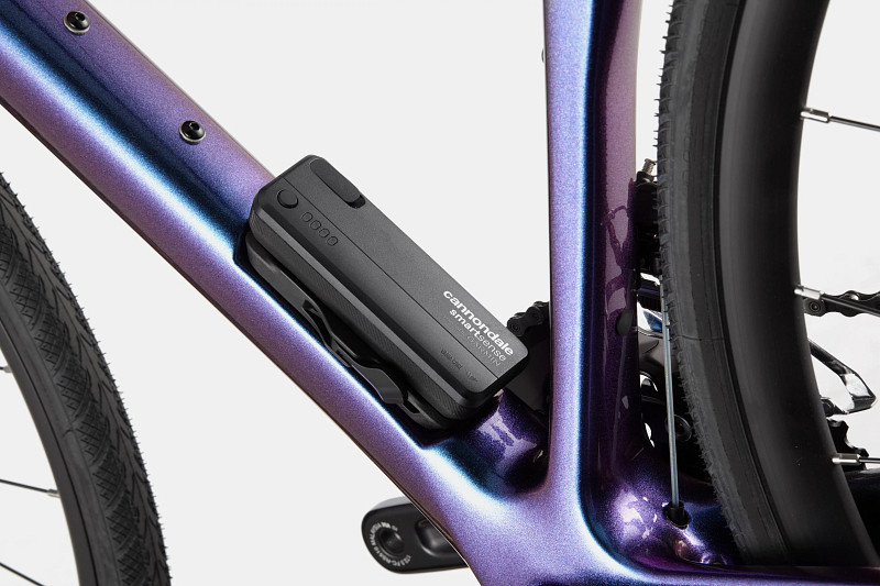 今回エントリーしたパープルヘイズカラーは光の加減に応じて青から紫に変色するのが特徴です。視覚的にも大変楽しいカラーリングは【Cannondale】の18番と言えるでしょう。しかし、この『SYNAPSE CRB 3L』の売りはそれだけではありません。ガーミンと共同開発した「SmartSense」を搭載。これにより後方から接近する車などを感知し守ってくれます。