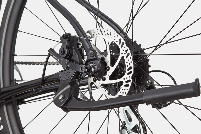 ブレーキは機械式ディスクブレーキが搭載されており制動力がしっかりしています。油圧式に比べて自分でメンテナンスしやすいため初めての方にもオススメになります。そして多くのクロスバイクや同クイックシリーズでも別売りとなっているキックスタンドをリミテッドモデルのみ標準装備しており、取り付けをされなかった際にたてかける場所を探す必要も無くなります!なんてストレスフリー!