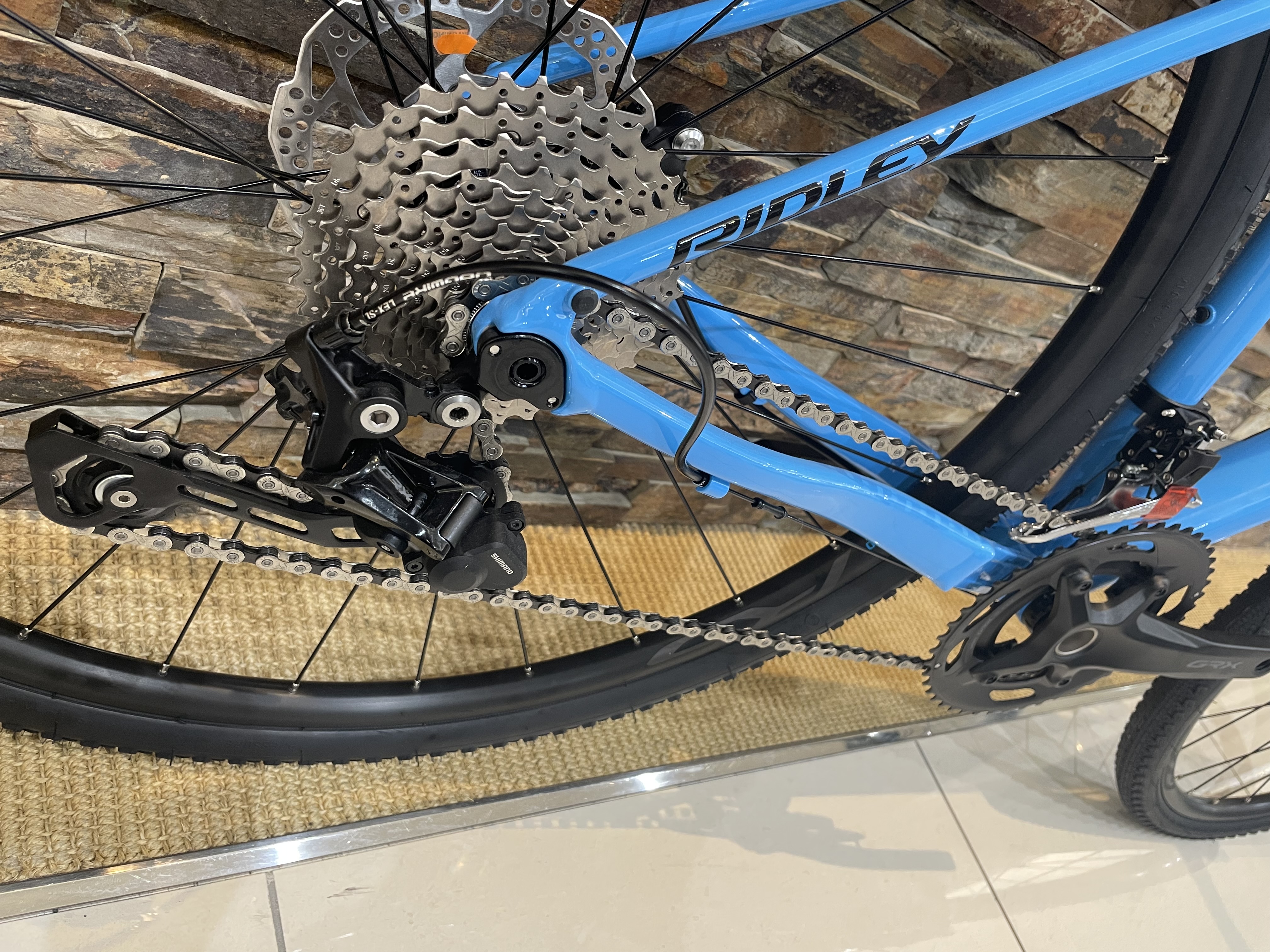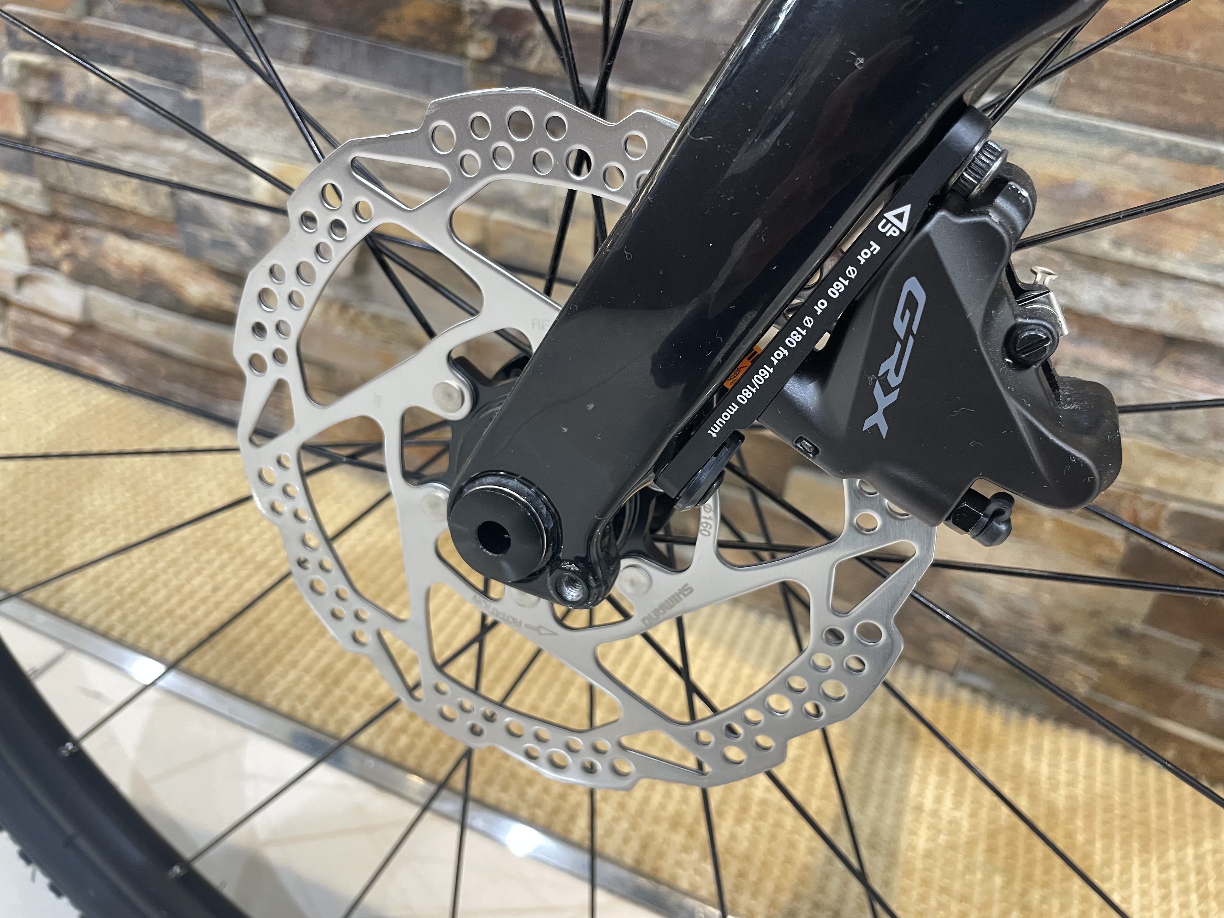 モデル名にもある通りGRXを搭載。前2段、後10段の計20段で、様々な場面に対応。クランクが小さめなので、より軽いギア比で悪路を走破しやすくなっています。