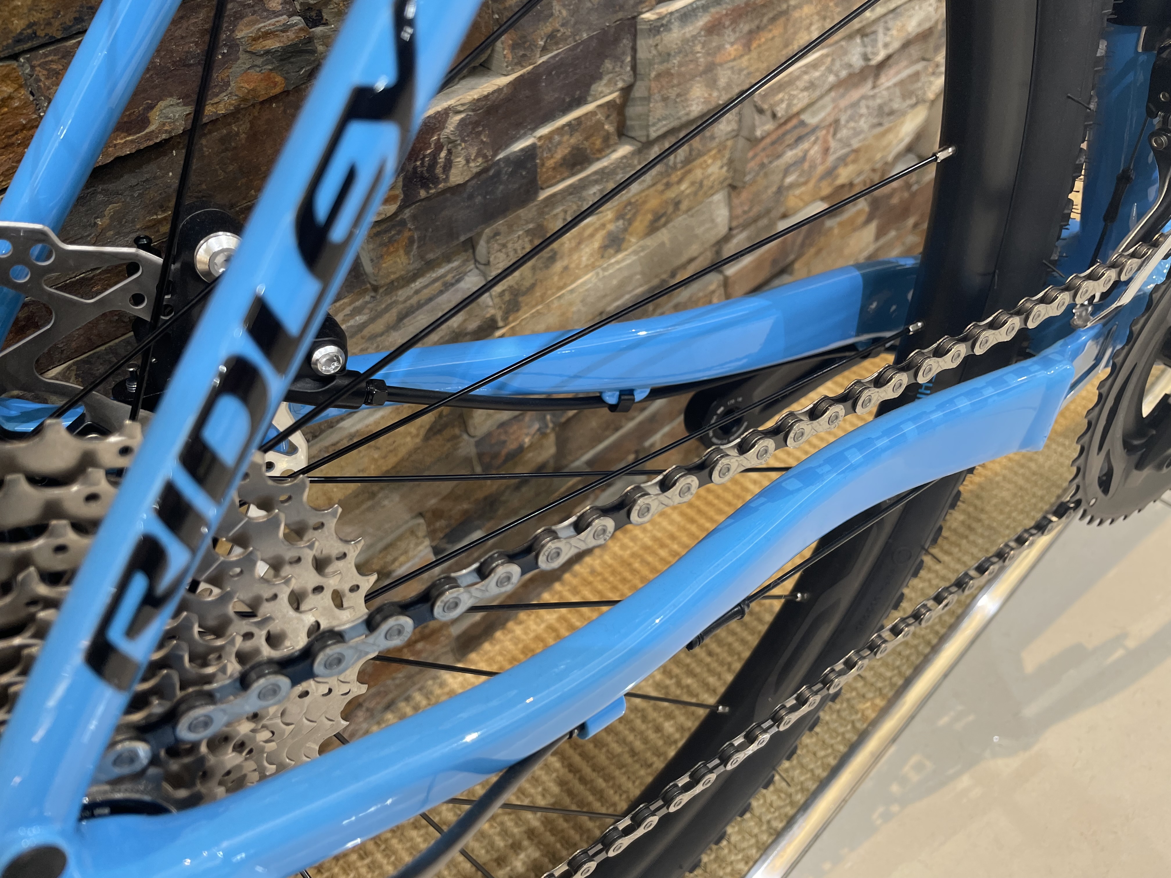 チェーンステーは大きく湾曲しており、乗り心地の向上に貢献しています。