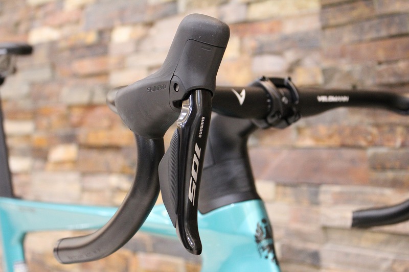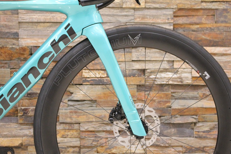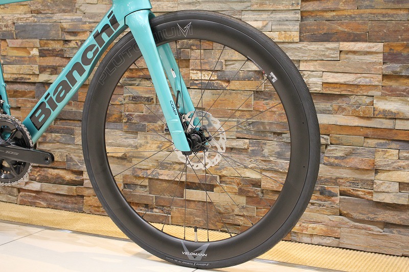 ビアンキ傘下のパーツブランド、ヴェロマンのカーボンホイールを標準搭載しています。リムハイトは50㎜で、フレームとの相性バツグンです。