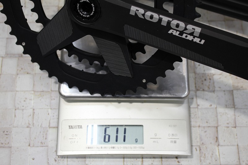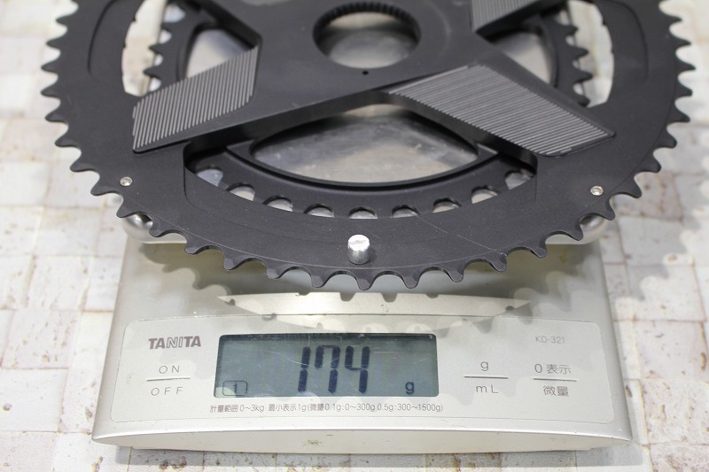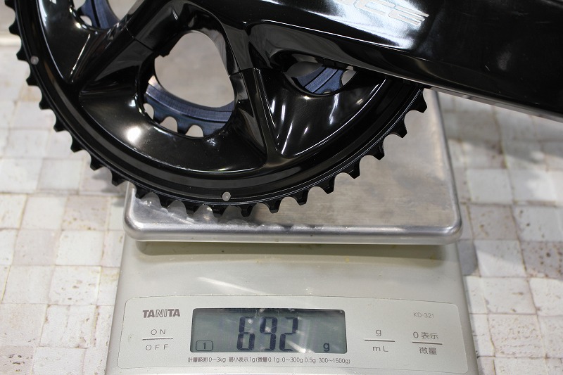 クランクセットの状態で、シマノFC-R9200(170㎜52-36T)と比較すると、なんと81gも差がありました。手に持って分かるほど大きな重量差です。