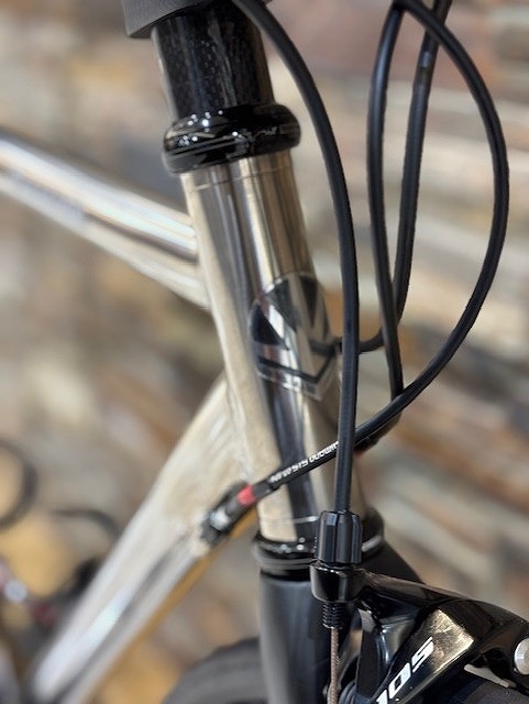 ちょっと写真のピントがズレちゃってますが、ヘッドパーツは「CANECREEK 110EC34OS」お客様のご希望により付属のヘッドパーツは使わずコチラが搭載されました。動きの精度も上がり細かい拘りが感じられます。