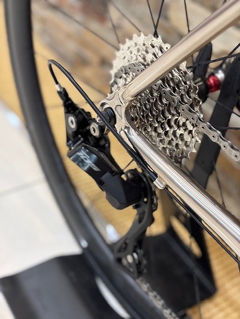 今回はお客様の車体をバラ完で組み立てさせてもらいました!今回はなんとチタンフレームです。いいですよねー。僕も終の一台として、そのうち手に入れたいもんです。