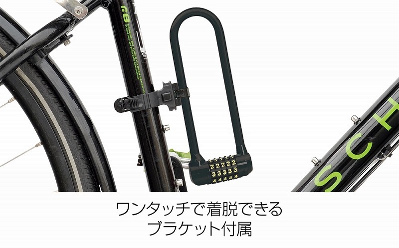U字本体はスチール製で横幅42㎜、奥行き162㎜までの対象に対応となっています。スリムな作りの為取り回しの良さも魅力。ロックには5桁の数字を用いるとセキュリティーも万全です。