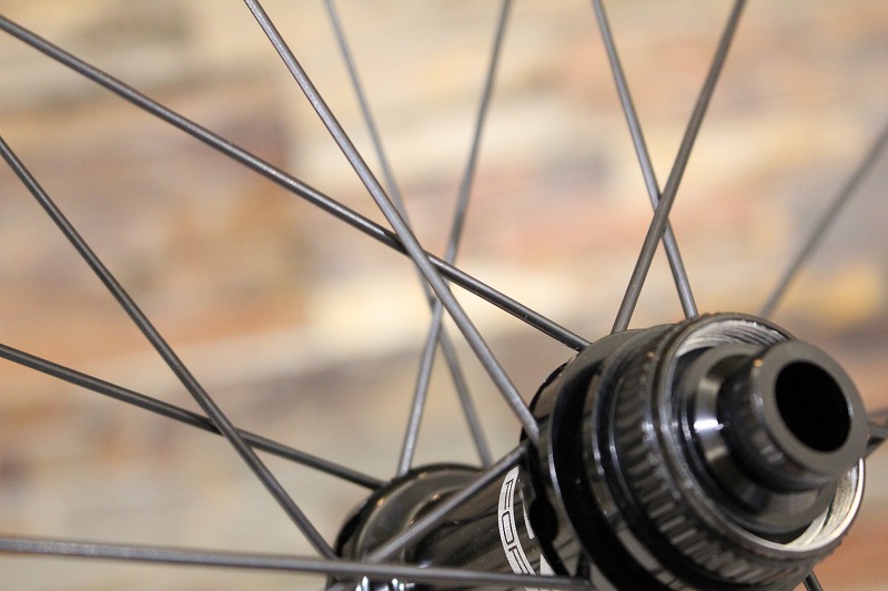 スポークは翼断面形状のエアロスポークを採用し空力を意識。他メーカーによくある平たい形状とは異なる為、軽量化にも貢献しています。