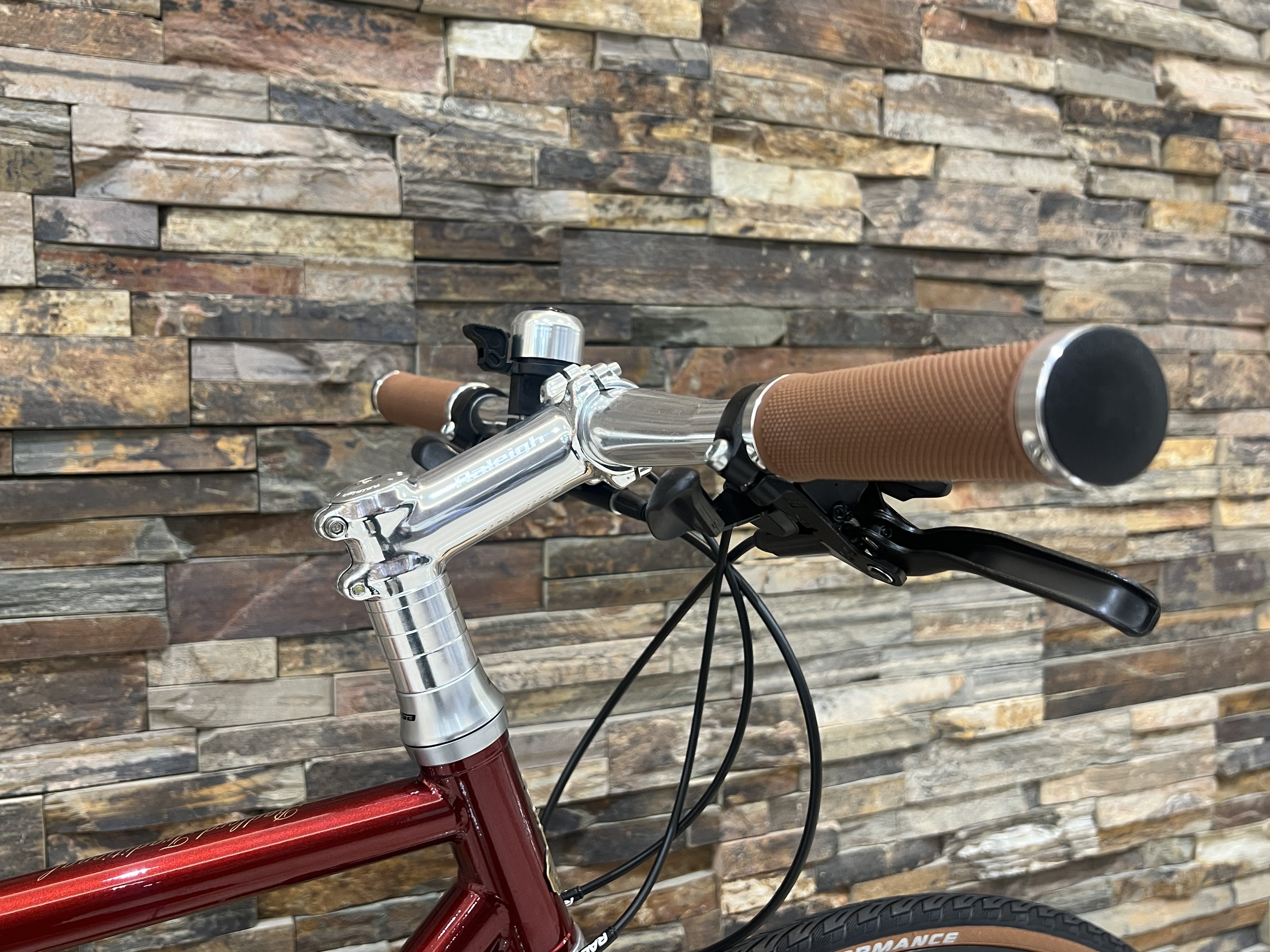 クロモリフレームにシルバーパーツで統一し、グリップ、サドル、タイヤでブラウン色を差し色で入り全体的にバランスがよくオシャレでクラシカルな見た目のバイクになっております。