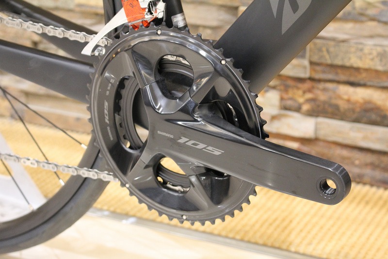 コンポーネントは定番の105を搭載。レースでもサイクリングでも幅広く対応します。