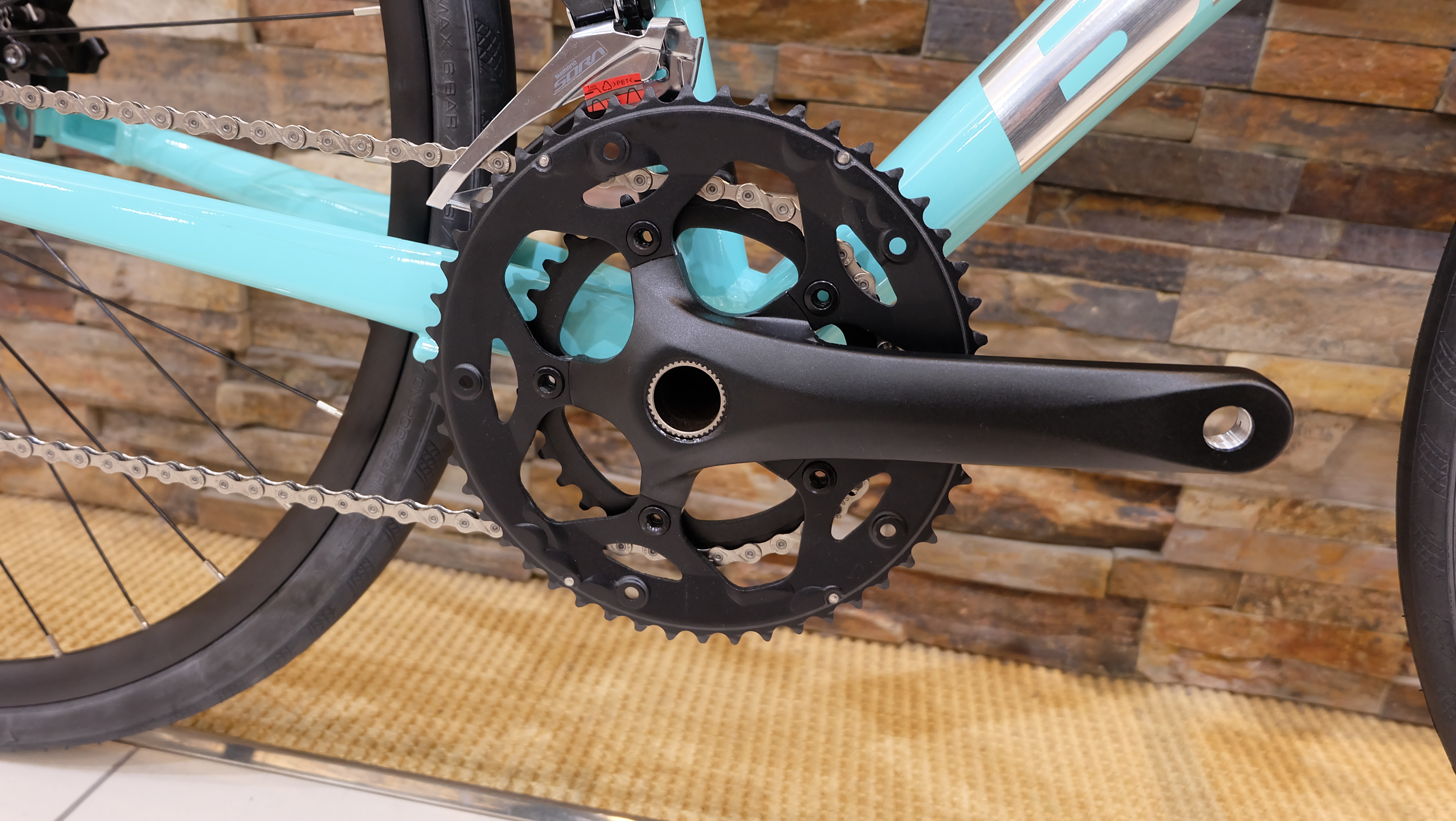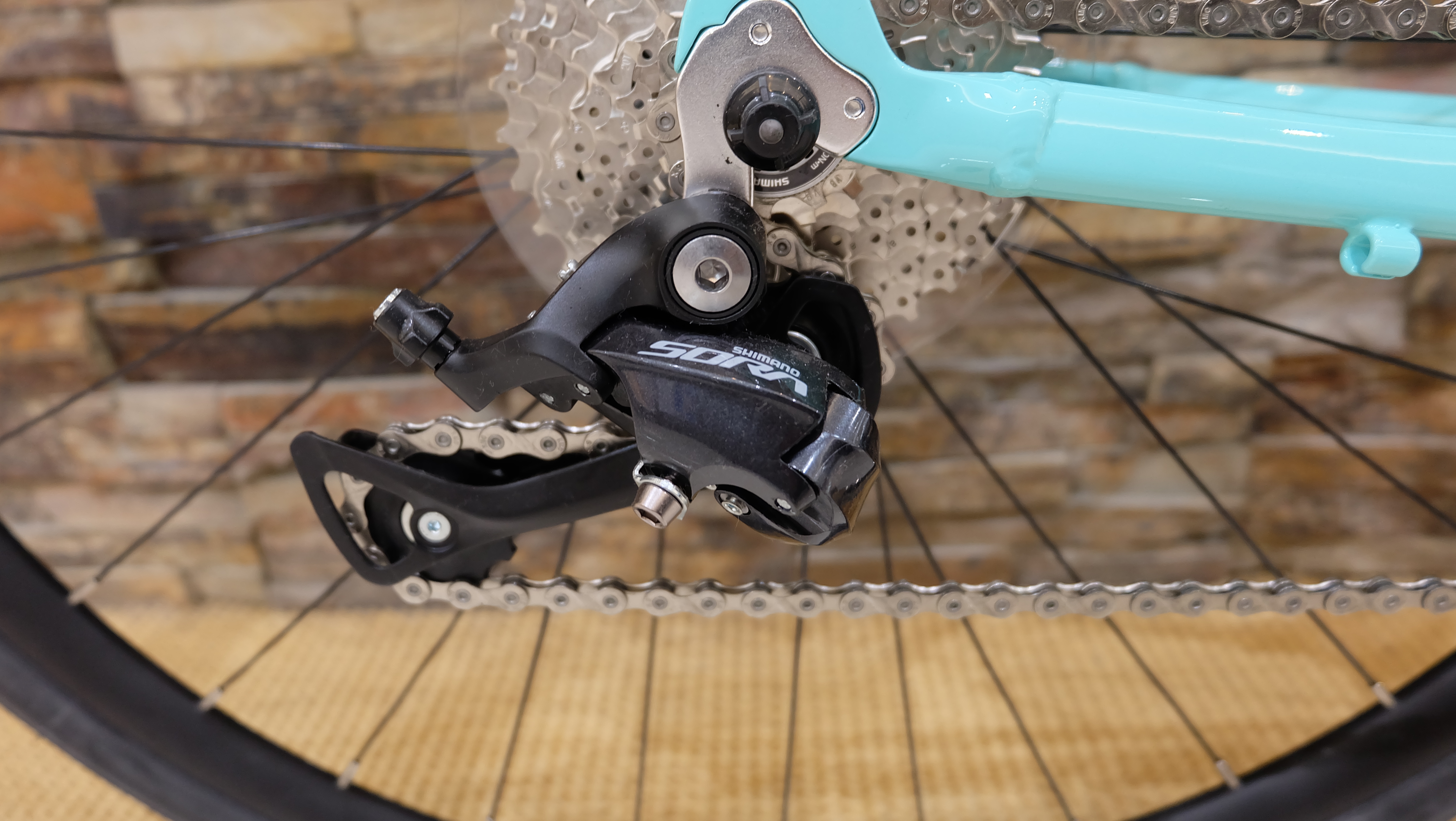 コンポーネントはSORA組になります。コンポーンネントを105からあえてSORAにすることでコストを落とし初心者の方でも手の届きやすい価格にすることができました。さらにSHIMANO製ということでスムーズで正確な変速操作が可能です。街乗りでも使いやすいという利点があります。
