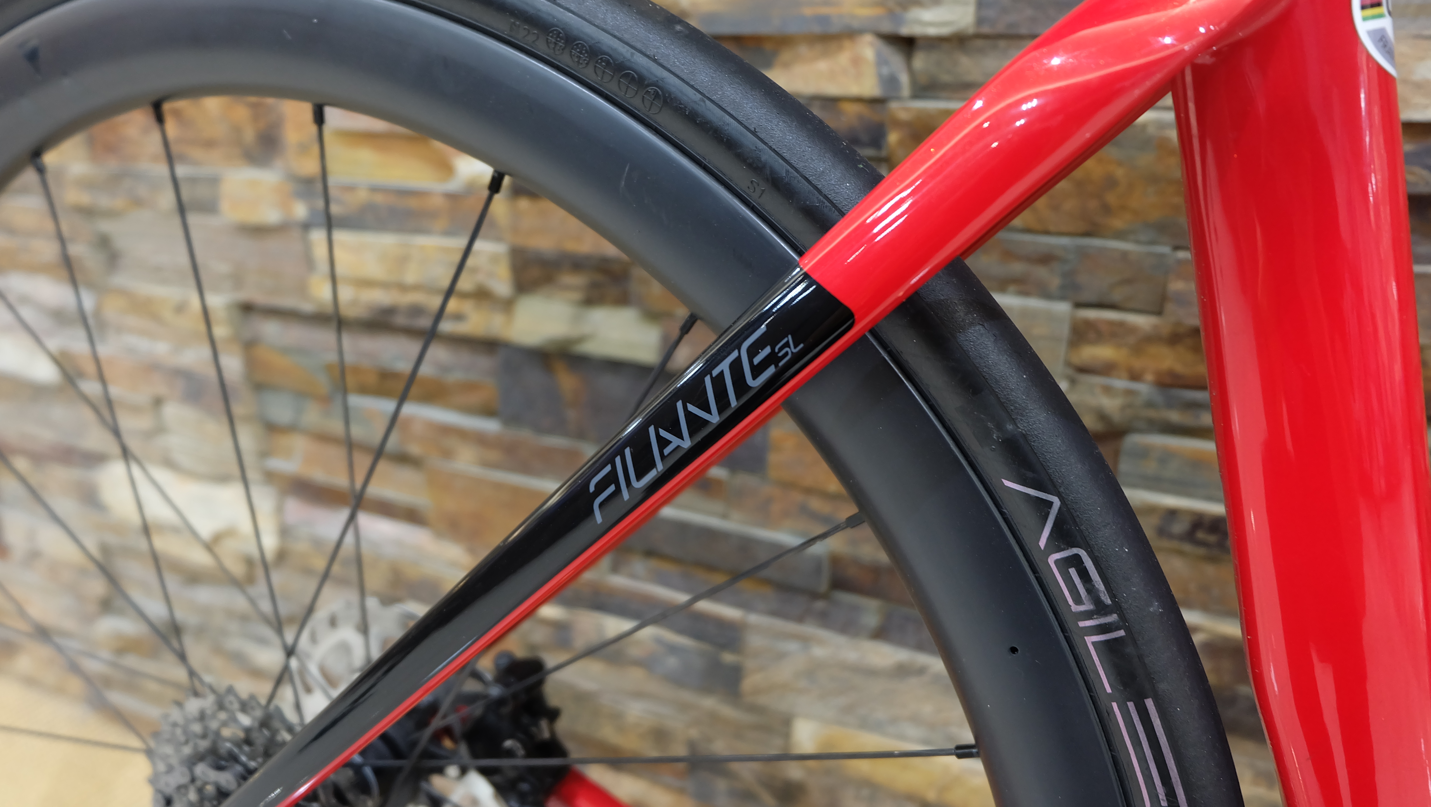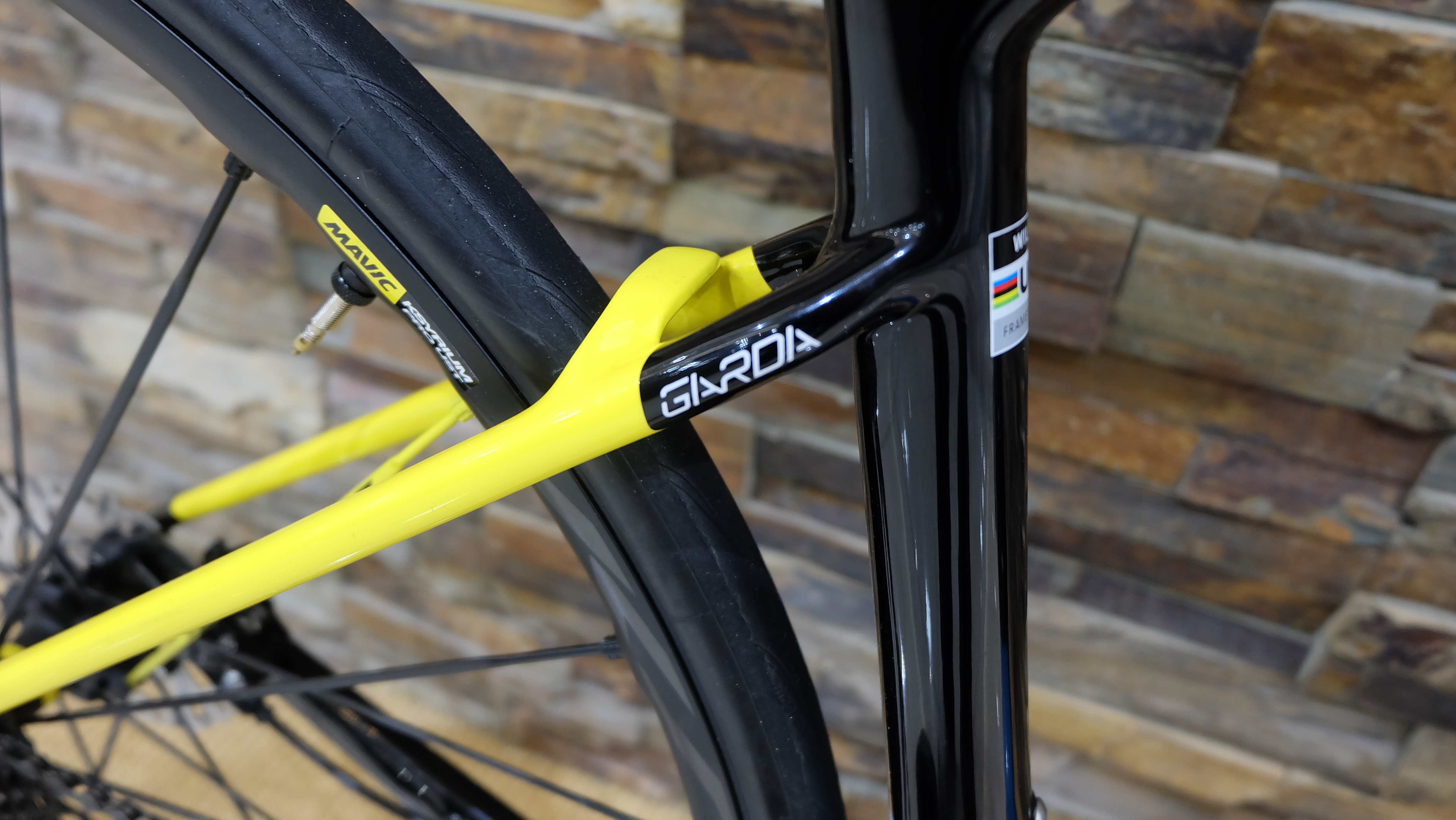 続いてはミドルグレードのGARDA DISCです。このバイクは専用のステムでフル内装になっているので見た目もスッキリして見えるのがとても良い点だと思いました。さらに最大32Cのタイヤを付けることもできます。乗り心地は個人的にGTR寄りで剛性は低いと感じました。さらに車体重量は9kg前後あるのでカスタムすることが必須であると思いました。