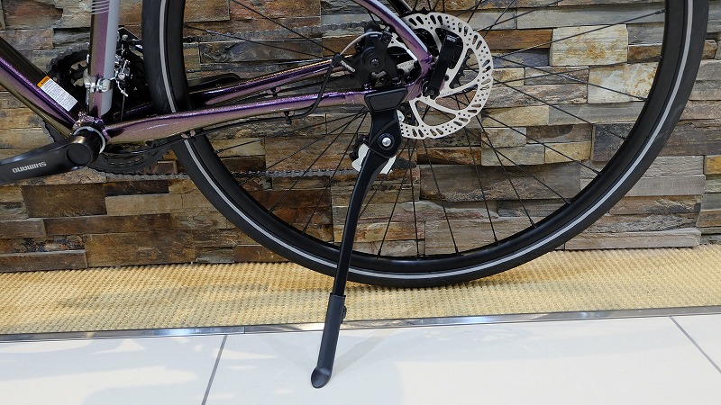 加えて通勤・通学用途で利用しやすくなる駐輪用のキックスタンドがデフォで付属するのもGOOD。只今、ワイズロード在庫限定でお求めやすくなっているのでチャンスです。カラーリングの珍しさで買うも良し。通勤・通学用としての買うも良しです。また、自転車は効率よく有酸素運動が出来るので運動目的で購入もアリですね。