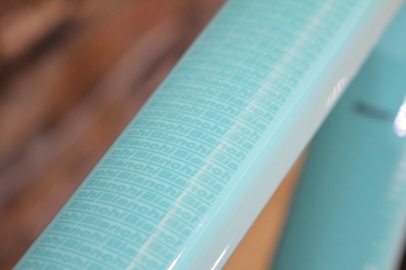 一見するとただのツートンカラーに見えますが、小さなBIANCHIロゴが沢山プリントされており、2022モデルの中でもこの様なデザインのフレームはスプリントのみで、当時からとても人気でした。