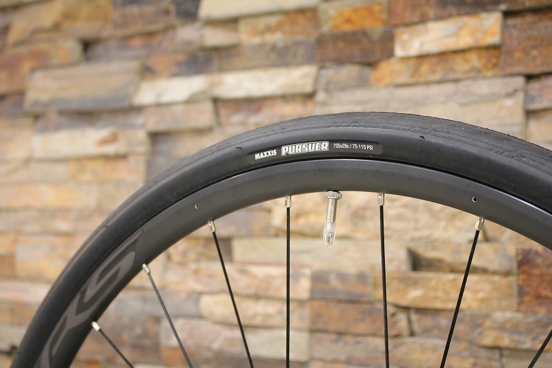 ホイールはシマノのアルミホイールを装着しています。平坦から登坂までオールラウンドに楽しめるフレームなので、軽量なローハイトのホイールが似合うと思います。今後のカスタムも楽しめそうですね。