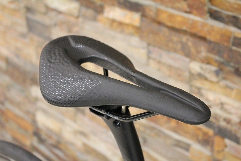 サドルもTNIのショートノーズサドルをチョイス。シートピラーに比べると少し重たいので、カーボンレールにカスタムすると更に軽量に仕上がりますね。