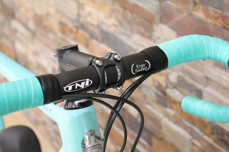 バーテープはフレームカラーに合わせたチェレステを巻いてみました。