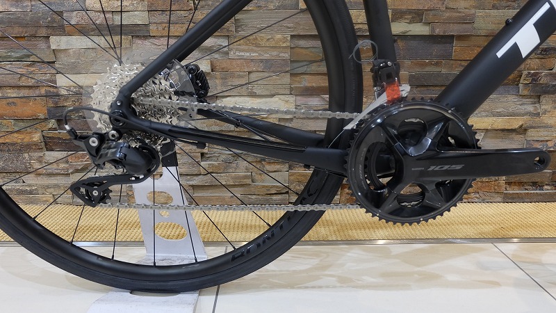 コンポーネントには12Sのシマノ105を搭載しており幅広いギア比と確かな変速性能はこのバイクにぴったりと言えるでしょう。