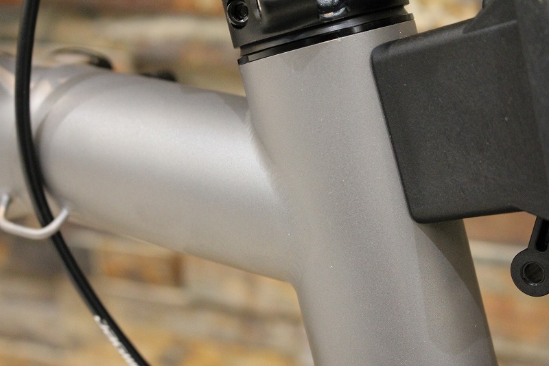 Cライン、Pラインより太く成形されたチタンフレーム。フレームの太さと渋いチタンカラーが相まって凄まじい重厚感を感じます。実車を見ないと分からない感覚ですね。