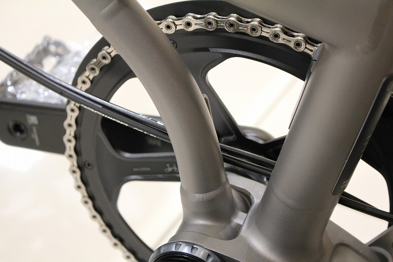 なんとカーボンクランクを搭載しています。アクスル径が30㎜の大口径を採用することで、剛性が高くなりガシガシ漕いでグングン加速していきます。