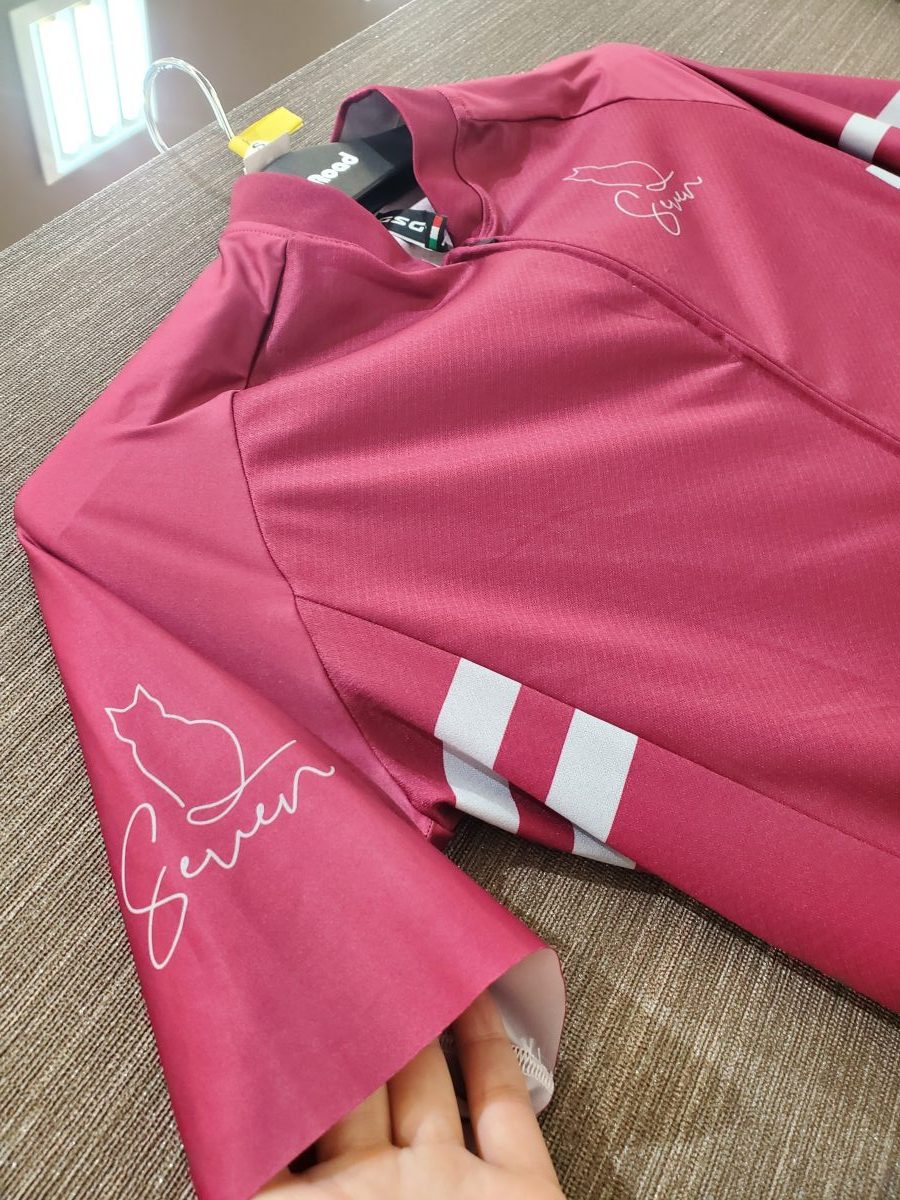他社メーカーさんでは、シンプルなものが多いですが、7ITAのジャージはワンポイントにネコの線画をあしらったロゴを採用。単色だけのジャージではちょっと物足りないという方にオススメです。