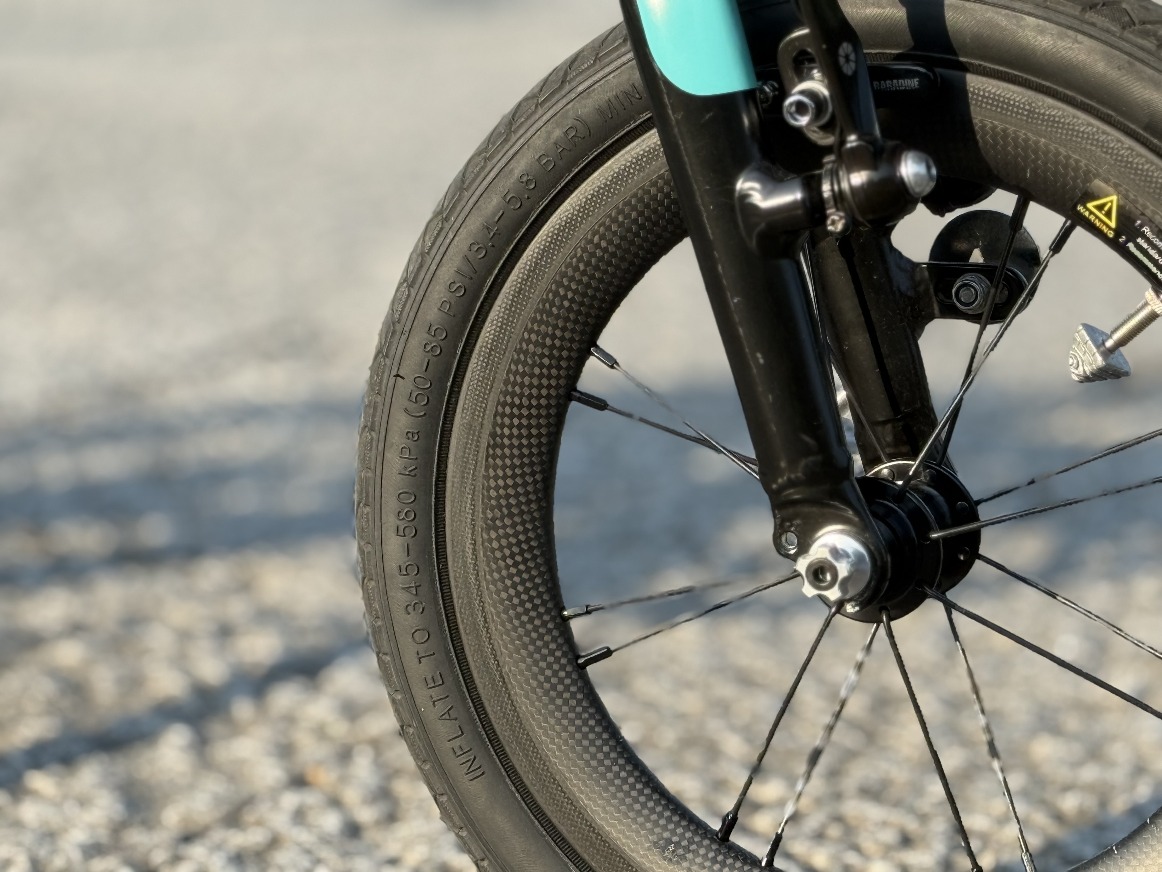 【スタッフインプレ】折り畳み自転車もロードバイク並の走行能力が手に入る!?愛車のK3に14インチカーボンホイール履かせてみた