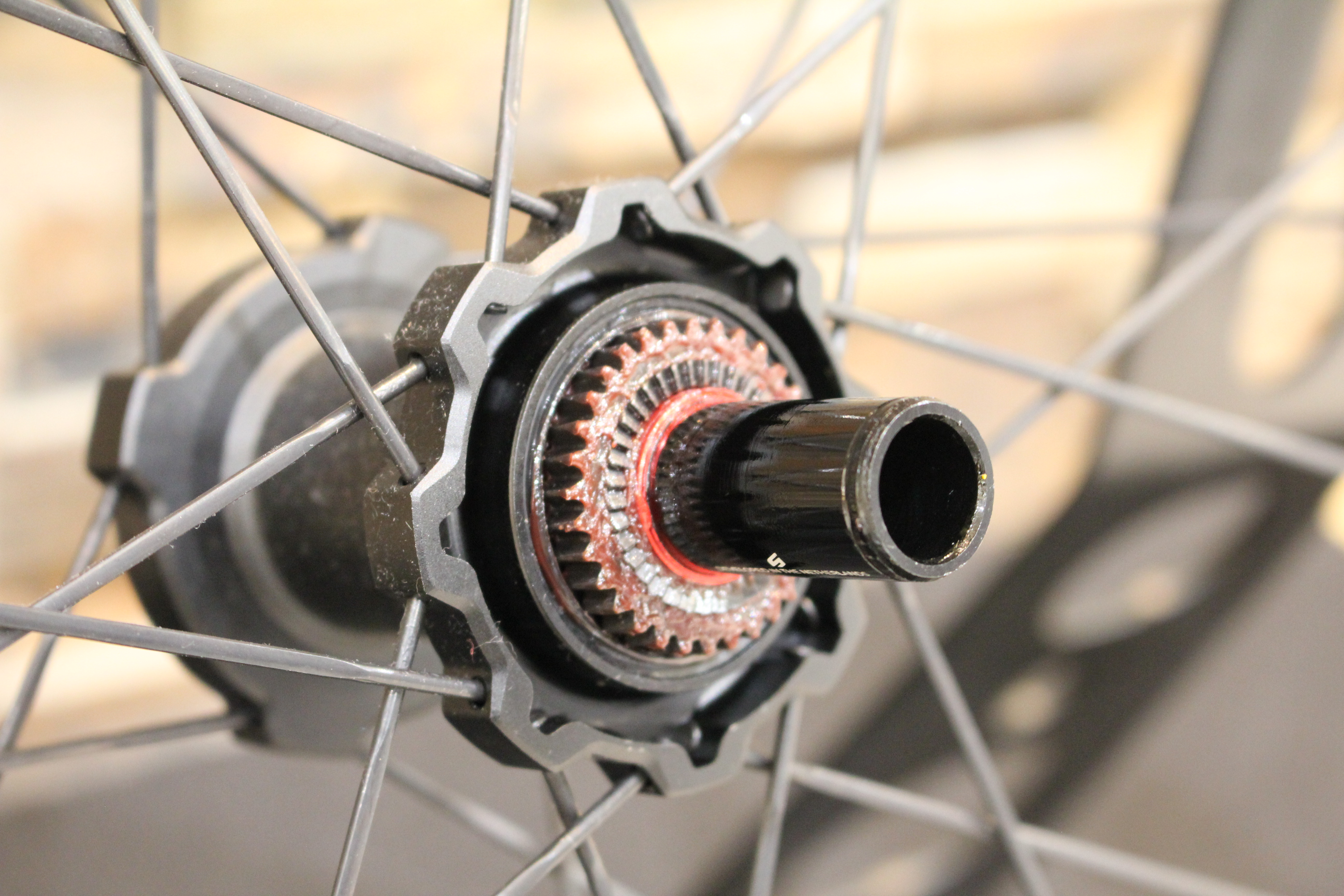 このホイールで一番のポイントはたくさんの研究を重ねて出来たダイヤモンドラチェットシステムです。パウル式で36Tのラチェットで優れた回転と軽量化を実現しました。踏んだ時にかかりやすくなっており遊びが少ないので漕いだ力が即座に反応されます。さらに摩擦を減らすことで足を止めても速度が落ちにくいです。メンテナンスもしやすくなっています。