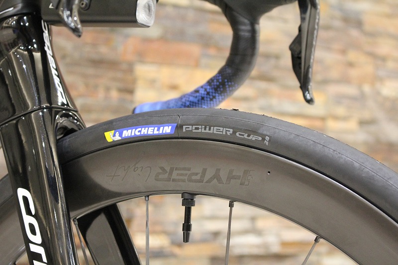 タイヤは乗り心地が柔らかいミシュラン パワーカップ28CにパナレーサーのパープルライトTPUチューブを入れています。