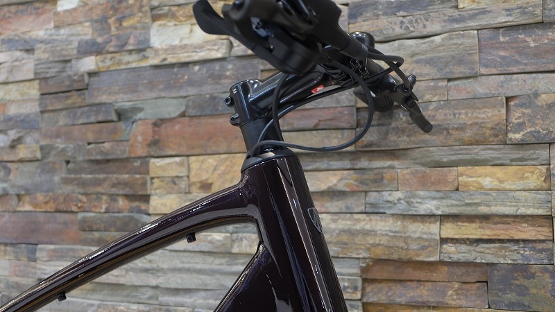 また、ヘッドチューブにケーブルがインするスッキリ見た目の構造。
