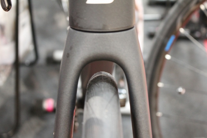 重厚感あるフレームと太いタイヤにより安定感の高い走りを楽しむことが出来ます。32Cタイヤを装着した状態で、これだけクリアランスに余裕があり、用途によっては更に太くすることも可能です。