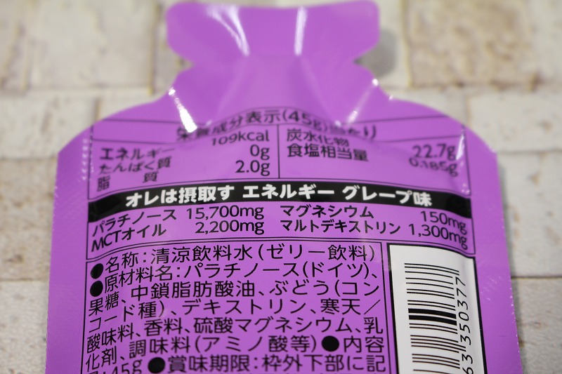勿論、カロリーの元になるパラチノース、マルトデキストリンなどお馴染みのエネルギーも配合されています。