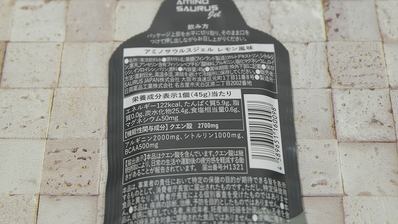 アミノサウルスはアルギニン×シトルリンMIX等のアミノ酸や、BCAAとクエン酸・ミネラルもしっかりと配合されています。他にもマグネシウムが豊富に含まれており、運動中のエネルギー補給と運動後の疲労回復に向いた補給ジェルです。