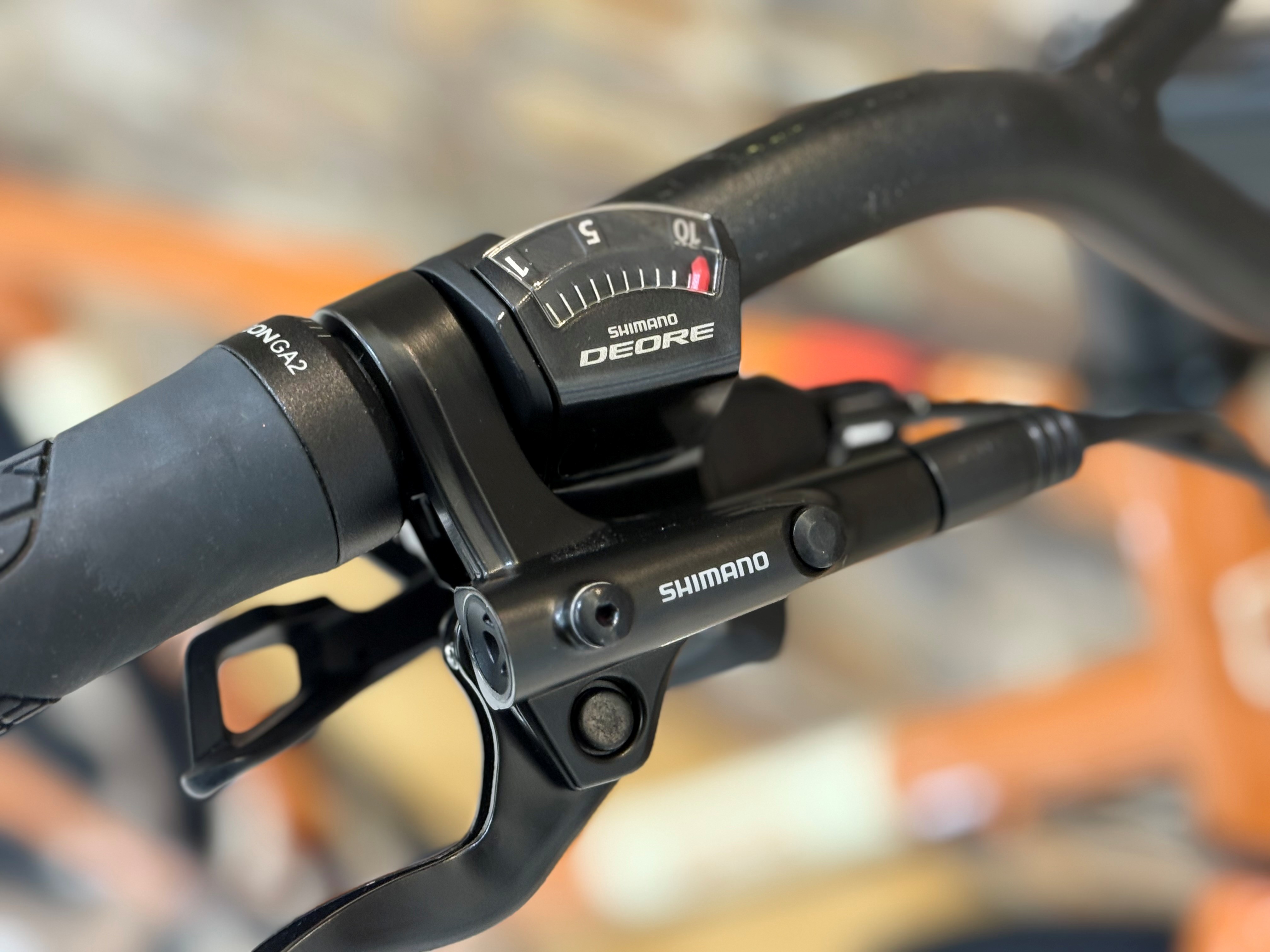 駆動部はMTBコンポSHIMANO DEOREを中心にリアは10速11-42Tで構成。通勤・通学や街乗りでは申し分なく使用出来ます。完成車のクロスバイクでDEORE搭載は中々めずらしい!!クランクセットはFSA仕様の38Tです。フロントシングル仕様で走行時の衝撃等によるチェーン落ち等のメカニカルトラブルを最小限にしチェーンキャッチャー付属で快適な走行が可能になります。またMTBコンポの特徴であるチェーンの遊びを抑制するスタピライザーもあり、ダート走行時でも安心して乗る事が出来ます。