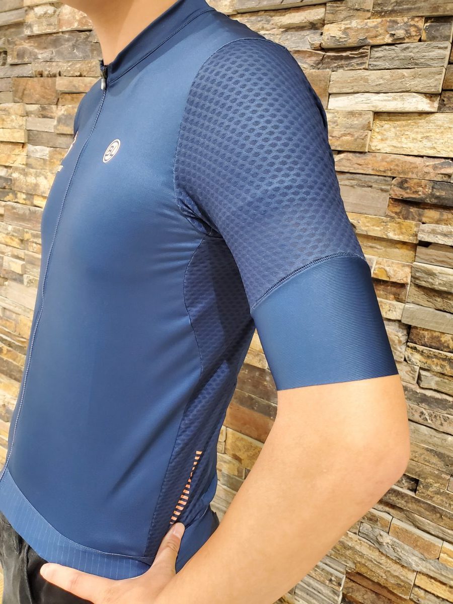 エアロ性能と通気性に優れたシンプルなデザインのジャージです。このジャージの特徴はなんといっても3種類の素材を使用して涼しく、快適に作られているところ。