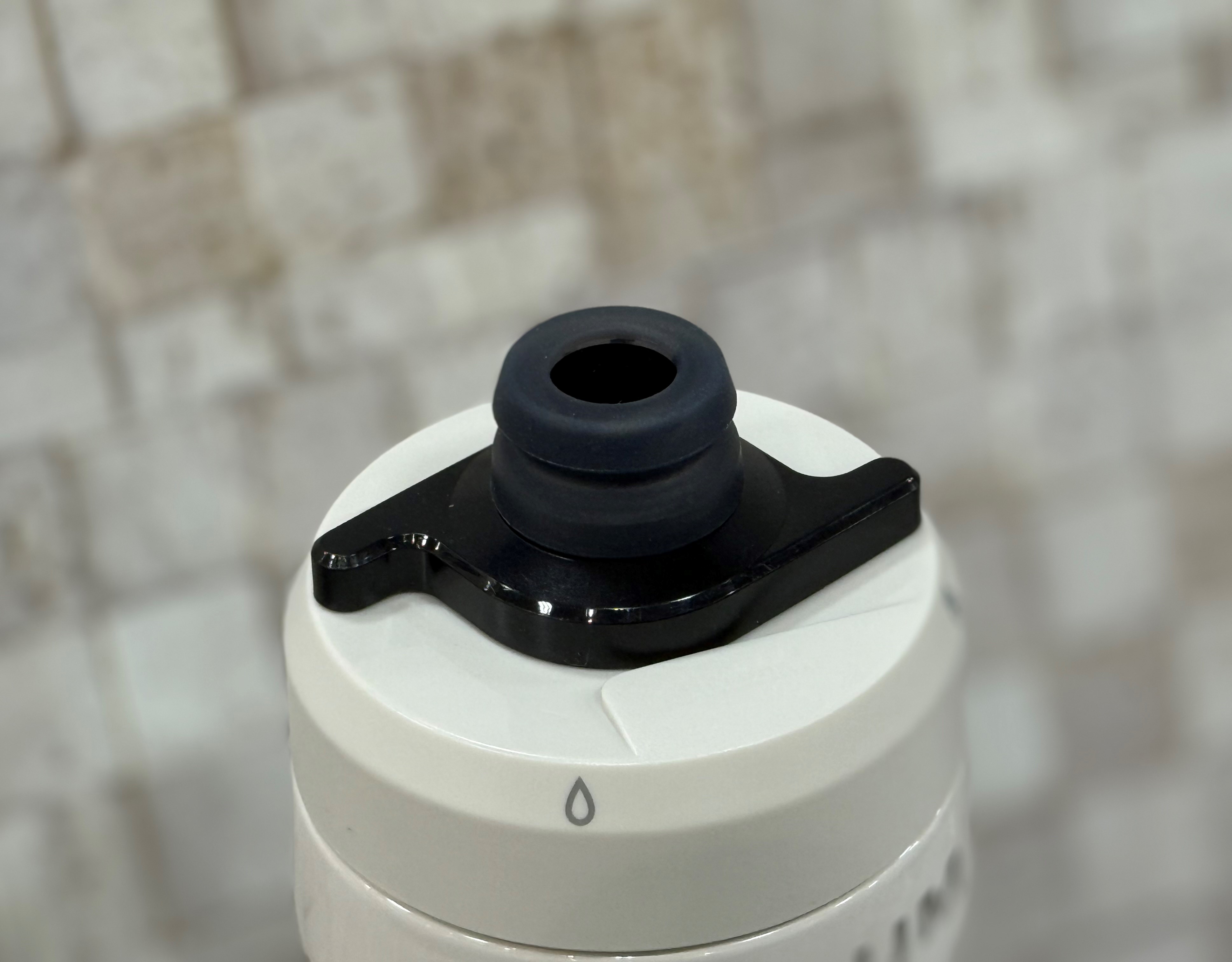 口の部分はロックレバー付の樹脂製キャップになっています。ロックレバー自体が大きい為片手でも簡単に開閉出来ます。ボディがステンレスな為通常のサイクルボトルのようにボディを押して飲む事が出来ません。基本ボトルは上にして飲みます。私は一度に沢山飲みたいタイプなので出る量が少ないか心配でしたが角度によれば安心して沢山水分を補給することが出来るので安心しました。サイクリング時は漕ぎながら飲むことはおそらく難しいと思いました。(サイクリング時の水分補給は罰則になる予定もある為)