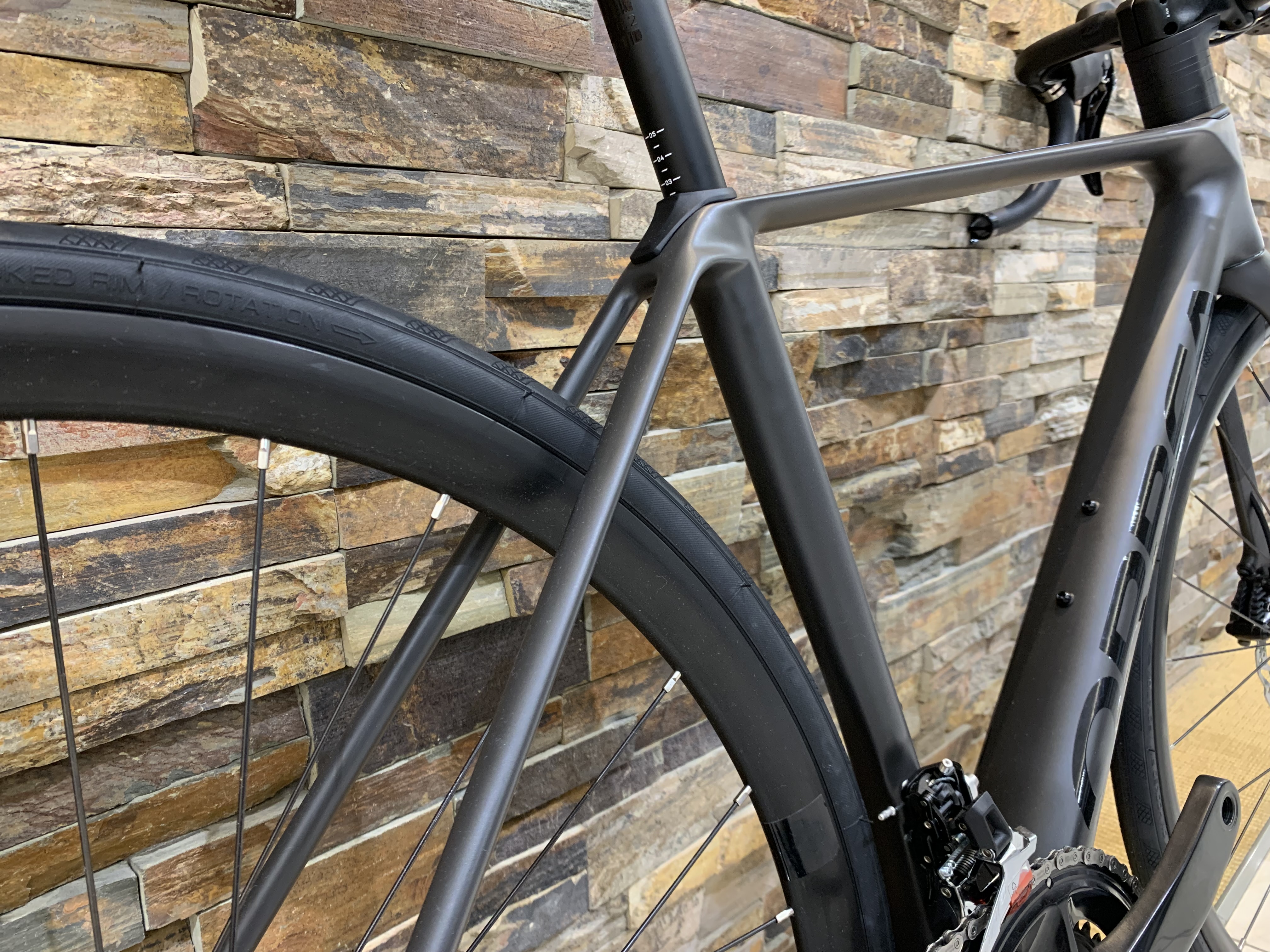 多くのフレームはトップチューブとシートチューブの交点が下がっております。空気抵抗軽減だったり乗り心地向上だったりメリットがありますが、Orbeaはあえて交点を下げずトップチューブから直線上になるようにしています。
