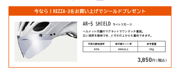 OGK KABUTO REZZA-3をご購入の方に別売りシールド(3,850円相当)を先着でプレゼント!