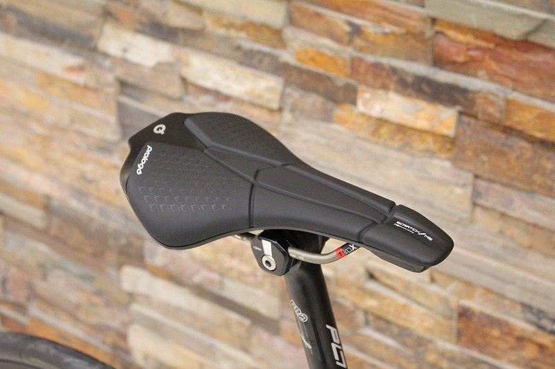 サドルはショートノーズサドルの中でも高い人気を誇るプロロゴ スクラッチM5。パッドの切れ目により深く沈み込むことで、ロングライドでも疲れにくく快適に走行出来ます。