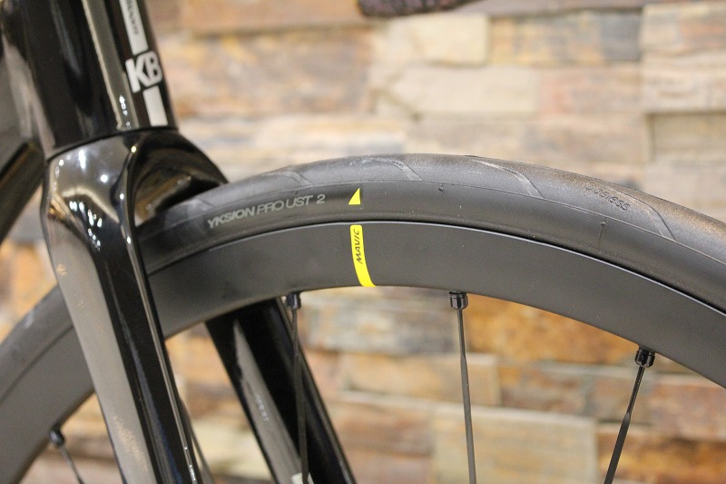ホイールはフランスメーカーのMAVIC、アルミホイールのKSYRIUM Sをチョイス。ホールレスのアルミリムは耐久力と剛性に長けており、ヒルクライムから平坦巡行まで幅広く対応するオールラウンドホイールです。