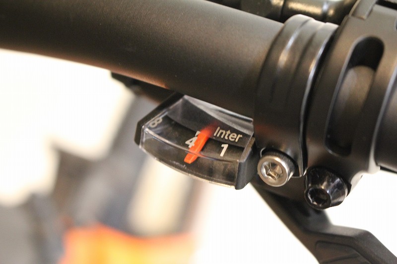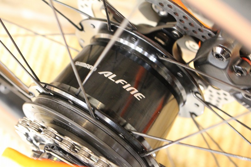 SHIMANO ALFINE内装8段ハブを搭載しています。今までのBROMPTONは内装×外装の組み合わせで、内装のみなら3段までとなっているため、これまで以上に長距離に適しています。