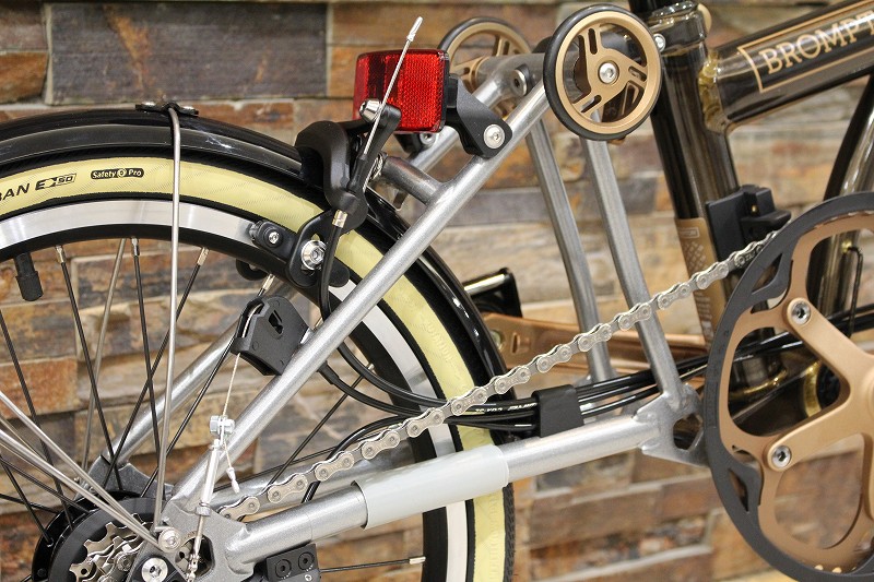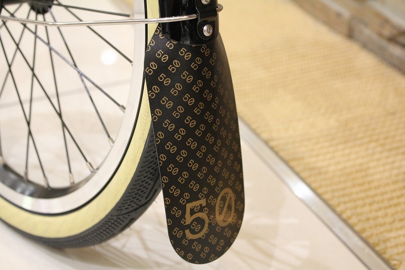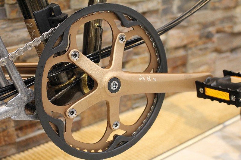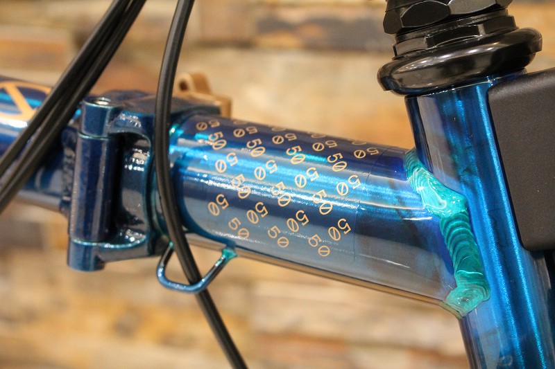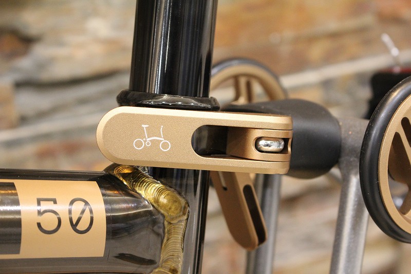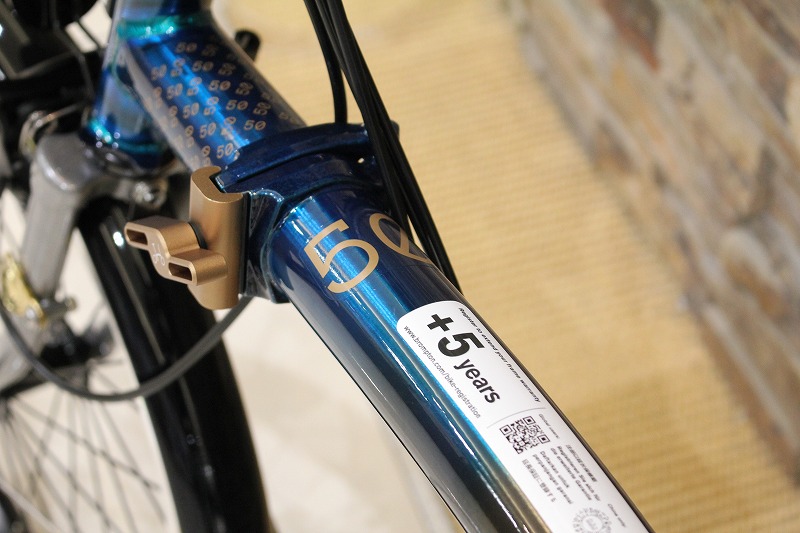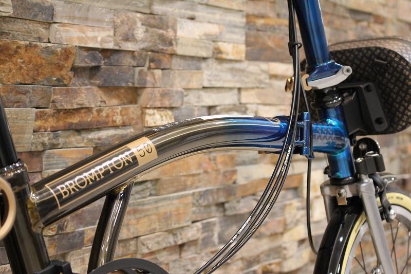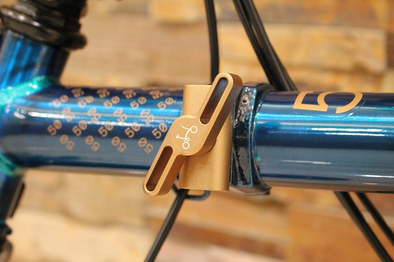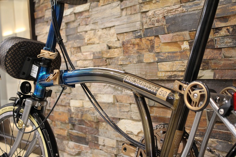 BROMPTON50周年記念モデルということで、一層気合の入った、ゴージャスな装飾が施されています。