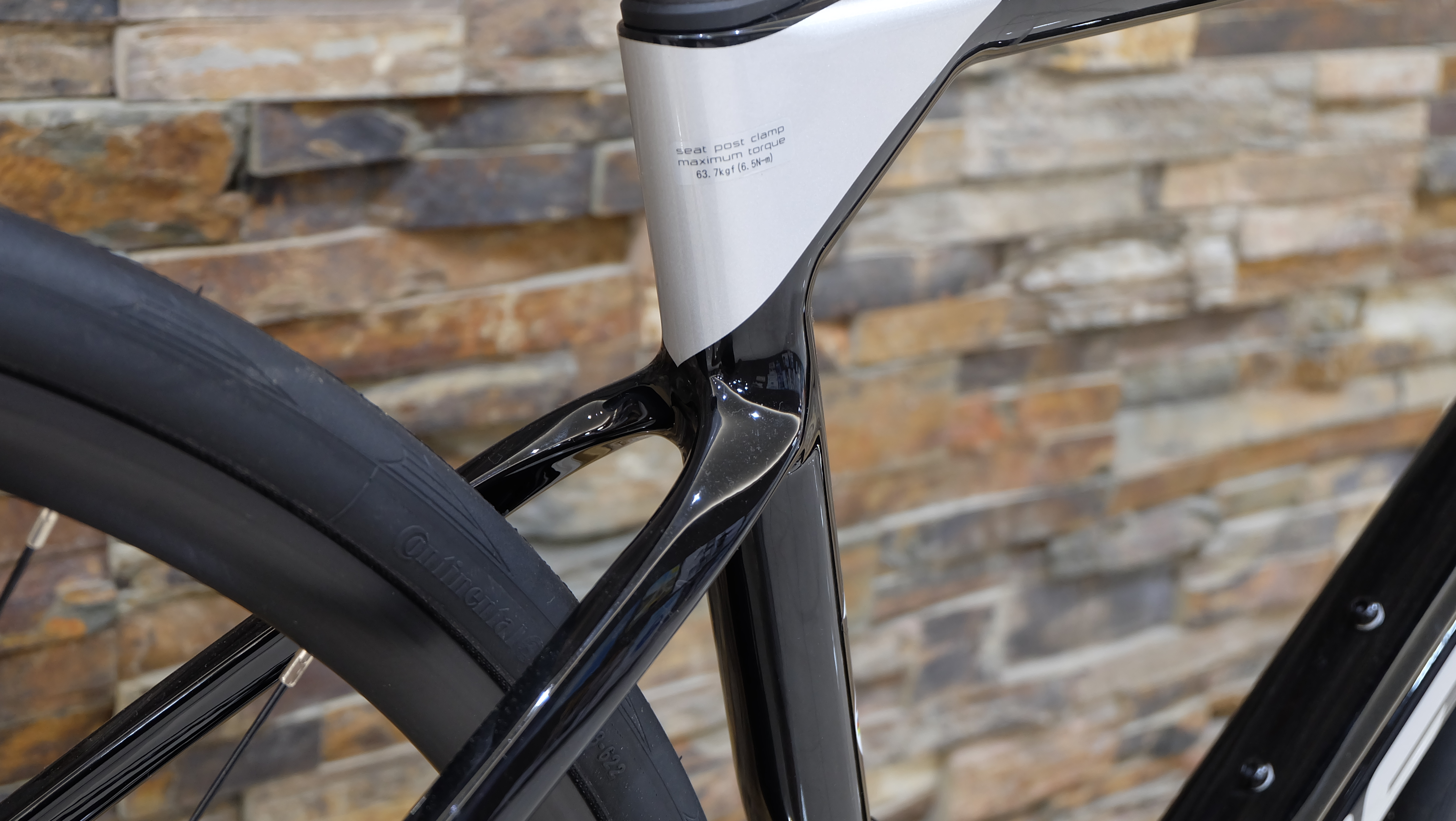 フレームのいたる所にセミエアロな造形が見受けられます。エアロダイナミクスを感じさせながらも軽さや快適さに重点をおいています。見るからに山が速くなりそうですね。